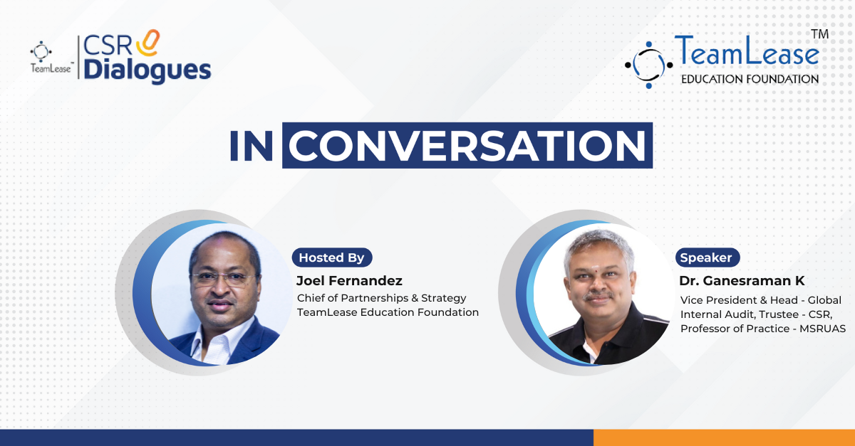 Dr. Ganesaraman K is the VP & Head of Global Internal Audit at 24 (7) ai , as well as the firm’s CSR trustee. He is also the Adjunct Professor of Practice at MS Ramaiah Univ. of Applied Sciences. Invited to The CSR Dialogues, he shared his insights into the various facets of CSR projects with Joel Fernandez, Head of Strategy, TeamLease Education Foundation.