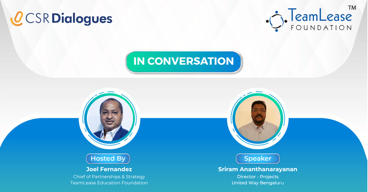 That’s one of the many questions that Sriram Ananthanarayanan, Director - Projects, United Way Bengaluru, and Joel Fernandez, Chief of Partnerships & Strategy, TeamLease EdTech Foundation discussed in depth, at another thought-provoking edition of the CSR Dialogues.