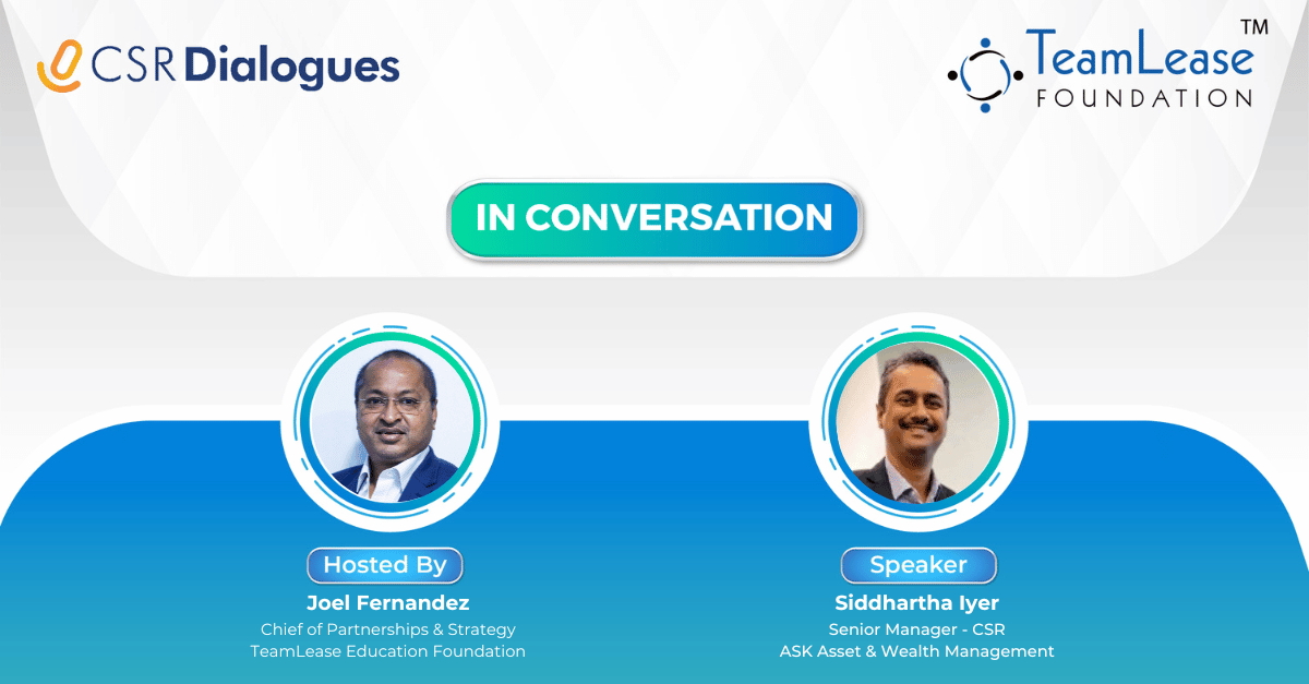 With 16 years of experience under his belt, Siddhartha Iyer, Sr Manager, CSR, ASK Asset & Wealth Management, shared his views on what CSR programs tend to work (and what do not) across rural India. His earlier experience with United Way of Mumbai, Magic Bus India Foundation & CRISIL Foundation brought much-needed insight to this important discussion with Joel Fernandez, Chief of Partnerships Strategy, TeamLease EdTech Foundation.